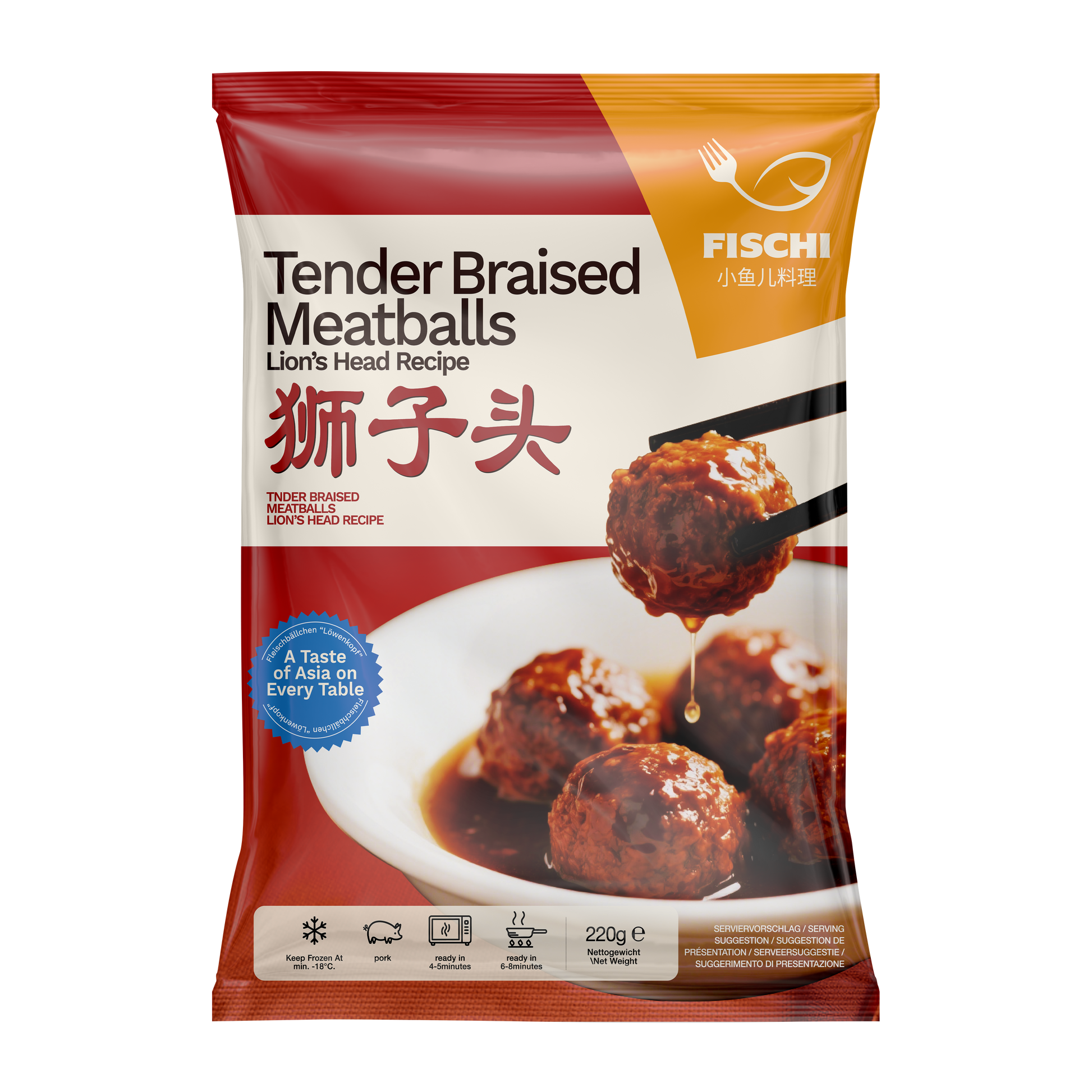 小鱼儿料理 FISCHI Food 狮子头是享誉中外的江南名菜,采用上等猪肉搭配葱、姜、蛋液等食材,手工精制而成。每颗肉丸饱满圆润,肉质细腻鲜嫩,咸香适中。我们的冷冻预制产品保留了传统工艺精髓,开袋即用,无需复杂准备。可红烧、清蒸、炖汤或清炒,烹饪方式灵活多样。营养丰富,蛋白质含量高,是家庭餐桌和宴席佳肴的理想之选。快速解冻后即可享受地道风味,让您轻松品尝正宗中式美食。冷冻保存,开封后请尽快使用。加热建议:1. 冷藏解冻后锅中放入少量清水后加热至适合温度。2. 放入碗中微波炉小火解冻后中火5到8分钟,中途拿出搅动使其受热均匀。